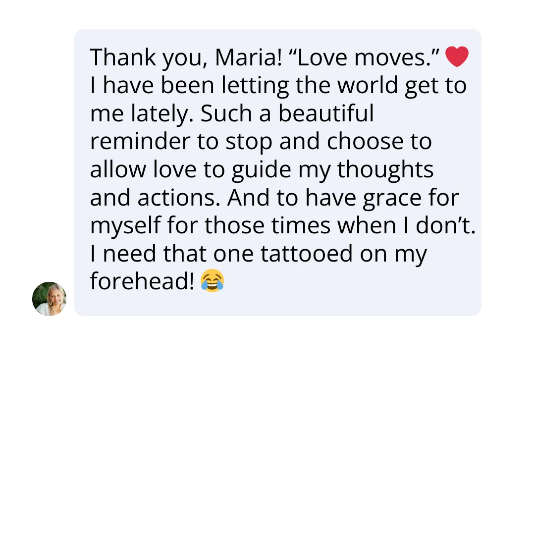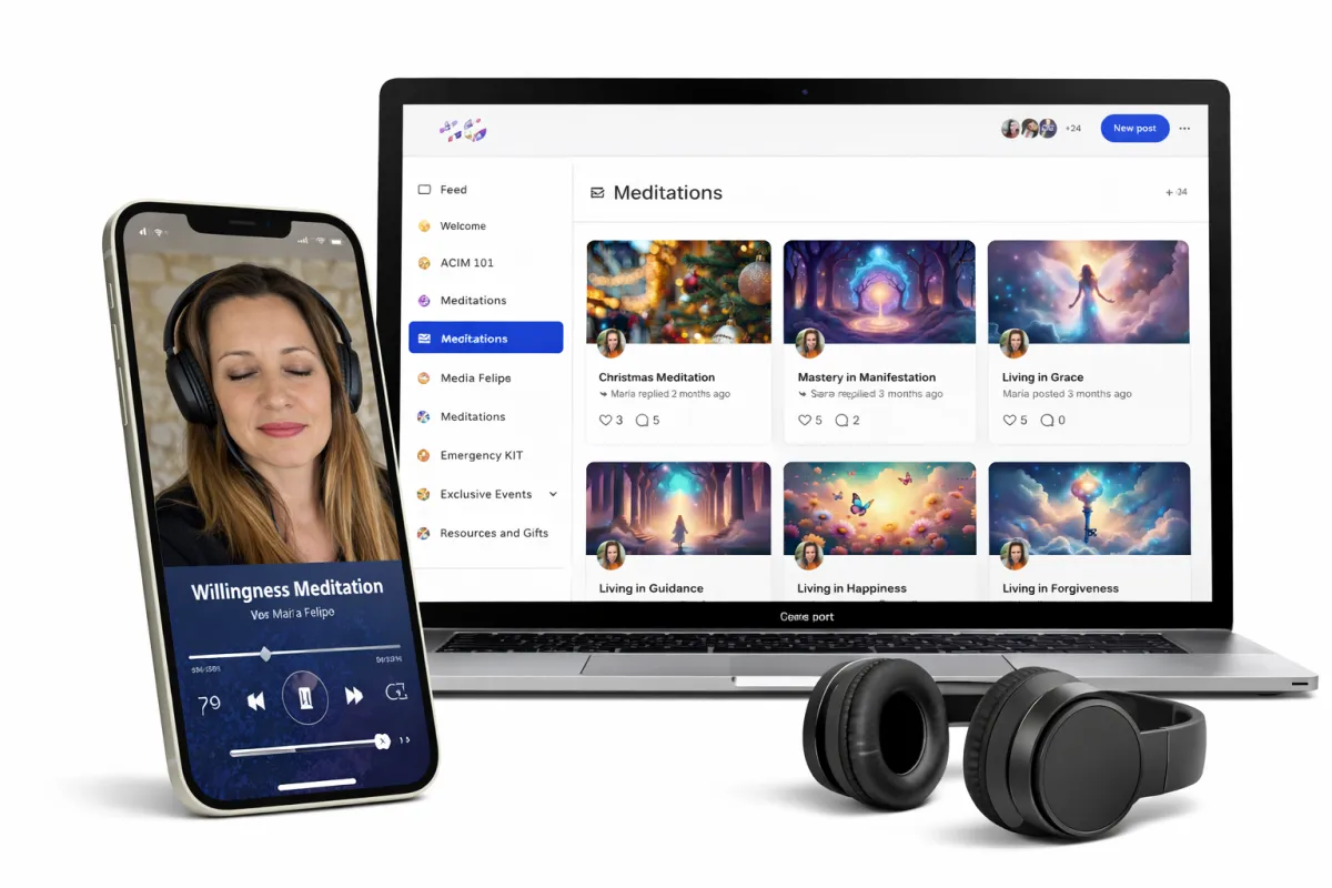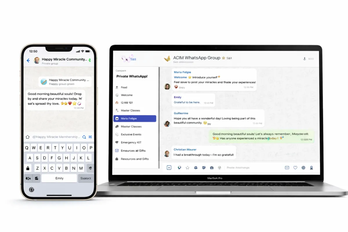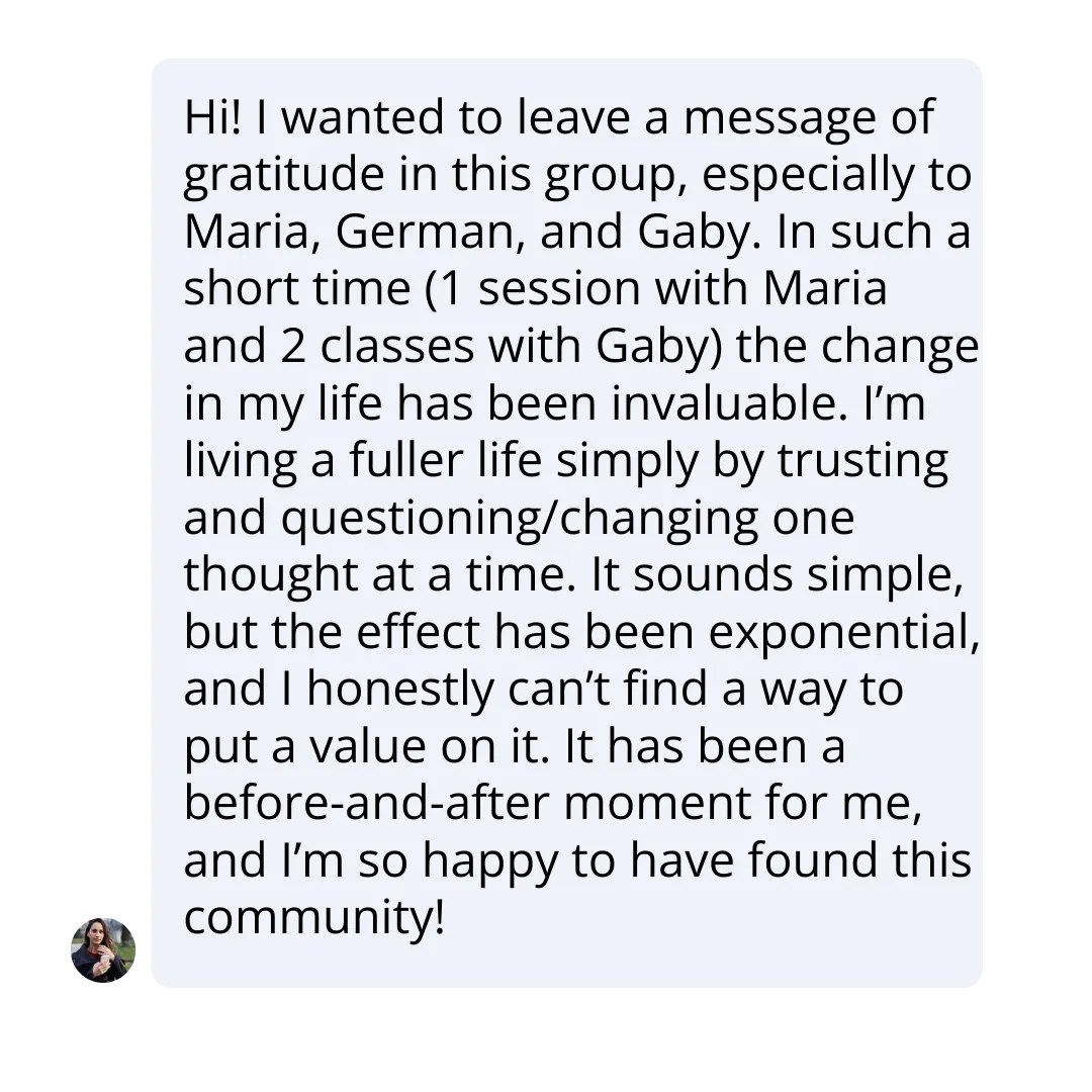 Inside our private WhatsApp group, you stay connected with the community, receiving announcements, encouragement, and support from people practicing the same principles. It’s a space to share breakthroughs, celebrate wins, ask questions, and stay inspired as you integrate the teachings into your life. You’ll also hear from our founder, Maria Felipe, who shares real-life stories, teachings, and guidance, creating a level of connection and support that makes this membership truly unique and powerful.